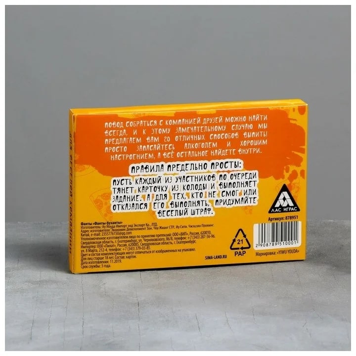 Купить игра для компании "фанты буханты" 20 карт от 100 руб. с доставкой до пункта выдачи в Дмитровске. Интернет магазин ДекаМаркет. Оплата при получении.